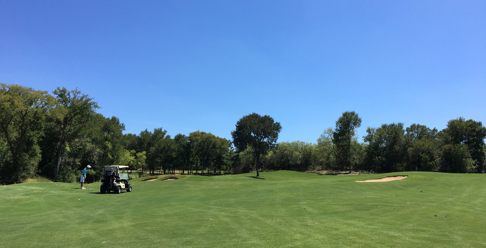To close the front nine is arguably one of the most unique holes on the course. On the tee, it is easy to tell that this hole calls for a right to left ball flight. The severe contouring of the fairway makes it difficult for balls to stay on the right side of the fairway but is the ideal angle into this punchbowl-esque green. The green itself is the most fascinating aspect of this hole. It guards the front of the green making it difficult to roll a ball down the hill and also creates a punchbowl in the front part of the green. What makes this so interesting is the most punchbowls are built the other way around where the sides and back create the bowl, not the sides and front. This portion of the green is not very large and makes it on of the most difficult shots of the day. Missing the green with this pin location can lead to a lot of fun shots given the friendly contours. The back portion of the green is much more forgiving on the approach but can be much more challenging for an up and down. The left side of the green drops off some 5 feet and gives players a couple options to get the ball to the hole. The ninth hole, in my opinion, is one of the best holes on the course. Each time I've played this hole I find myself learning something new about it and golf course architecture in general.